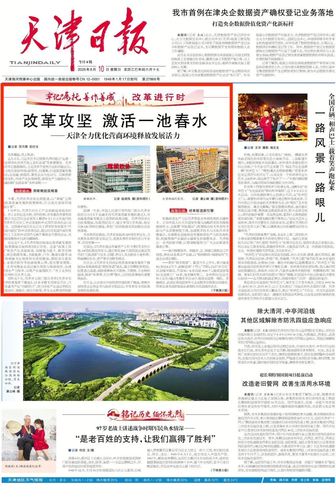 去年2月,习近平总书记视察天津时提出“在进一步全面深化改革开放上善作善成”等重要要求。天津始终牢记殷殷嘱托,立足改革开放先行区的功能定位,全力优化营商环境:破壁垒、扫藩篱,打通高质量发展堵点;活金融、畅循环,激发企业内生动力。沉睡资源焕发生机,传统产业加快转型,新质生产力蓬勃壮大,金融创新“全国首单”竞相涌现……